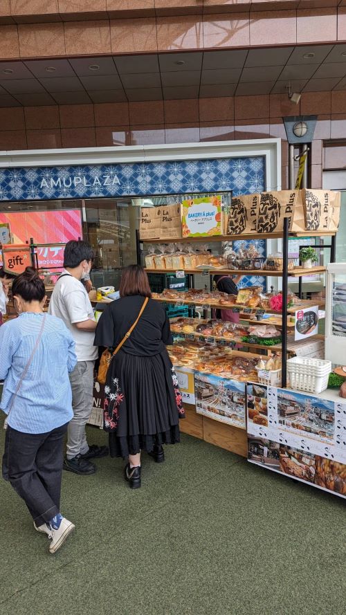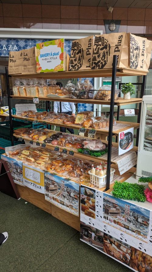 「かごパンマルシェ2024」開催中!!(このイベントは終了しました。) 投稿日:2024年05月25日 鹿児島中央駅アミュ広場で開催中の「かごパンマルシェ2024」!! La Plusからベーカリー「アプリュス」も初出展です。出展2日目は、昨日を大幅に、大幅に上回るお客様に来店頂き、追加補充、補充で1日が終了!! 残すところ、26日最終日です。多くの皆様に「アプリュス」を知ってもらえるように頑張ります。 このイベントは終了しました。沢山のご来場頂き誠にありがとうございました。